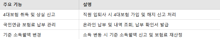 가입자 관리, 보험료 납부, 4대 보험 신고 등 국민연금과 관련된 여러 업무를 한 곳에서 해결할 수 있습니다.