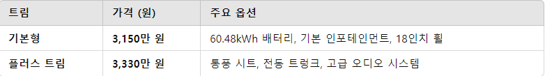 📌 플러스 트림은 180만 원 추가 비용으로 더 많은 옵션 제공