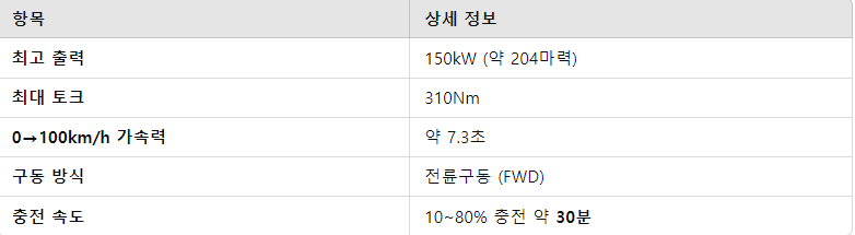 ✔ 204마력 고출력 모터 – 캐스퍼 EV(99마력)보다 두 배 이상 강한 성능