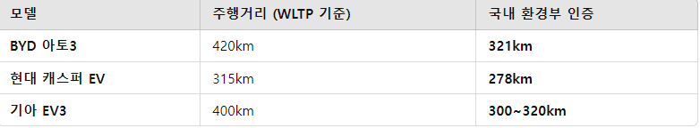 📌 BYD 아토 3 주행거리 – 경쟁 모델 대비 우위?